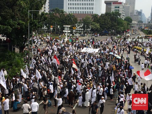 Perwakilan itu terlihat menggunakan pakaian muslim serba putih dan beberapa terlihat mengenakan ikat kepala bertuliskan kalimat tauhid berwarna hitam. (bmw/sur)