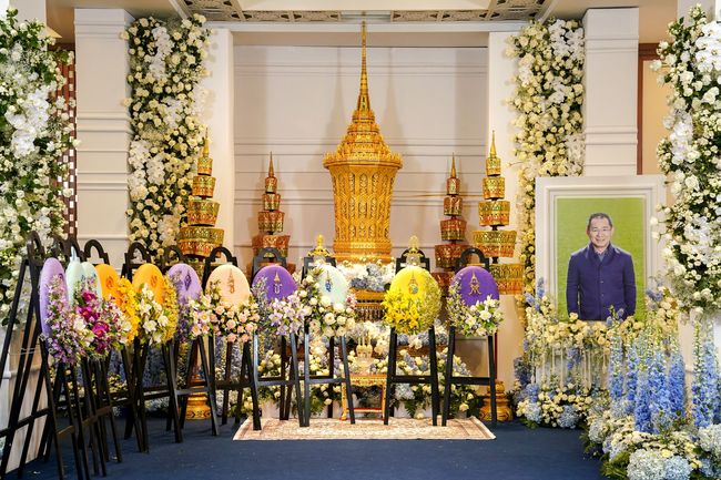 Tahap pertama pemakaman diadakan di kuil Debsirindrawas di Bangkok pada Sabtu malam, ditandai dengan ritual pemandian Buddha tradisional dan sembahyang. Saat ini, para biksu akan mengucapkan doa dari bacaan religius setiap malam selama sepekan.