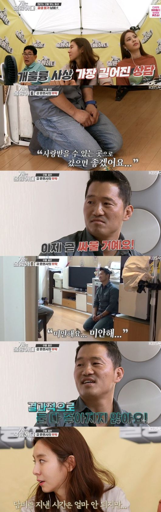 22일인 오늘 방송된 KBS 2TV 예능 '개는 훌륭하다'에서 강형욱이 첫 무릎을 꿇었다.