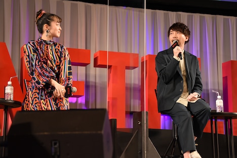 まずは明日3月28日に全世界で配信スタートする「テルマエ・ロマエ ノヴァエ」について津田がトーク。ルシウスが古代ラテン語でまくしたてるさまを切り取った本編映像がスクリーンに映し出されると、梶が「すごい。この尺なのにたくさん勉強しなくちゃいけなさそう……」とつぶやく。津田は「楽しかったですけどね。古代ラテン語なので正解がないから、堂々と演じることができました。多分、今この中で僕が一番古代ラテン語話せると思います」とジョークを飛ばす。作品のアピールポイントを問われると、津田は「皆さんがご存じの通りの非常に軽いノリで、気軽にご覧いただけると思います。癒される作品なので、例えばお風呂場でご覧いただいて、ルシウスと一緒にルシウスとお風呂に入っているような気分でご覧いただけたら」と語った。