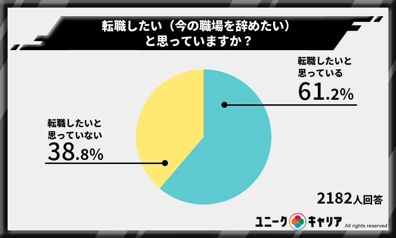 結果、転職したい(今の仕事を辞めたい)と答えた人は、61.2%だった。