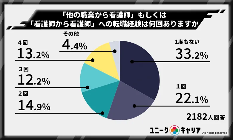 「他の職業から看護師」もしくは「看護師から看護師」への転職経験を訊いたところ下記の結果となった。
