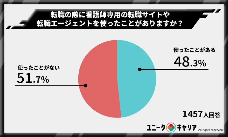 転職をした看護師1,457人を対象に、看護師専用の転職サイトや転職エージェントを使ったことがあるかを訊ねた。