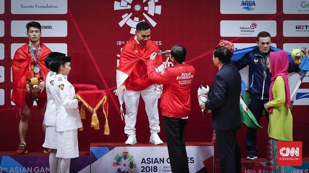 Medali emas Eko Yuli langsung diberikan Presiden Joko Widodo. (CNN Indonesia/Safir Makki) |