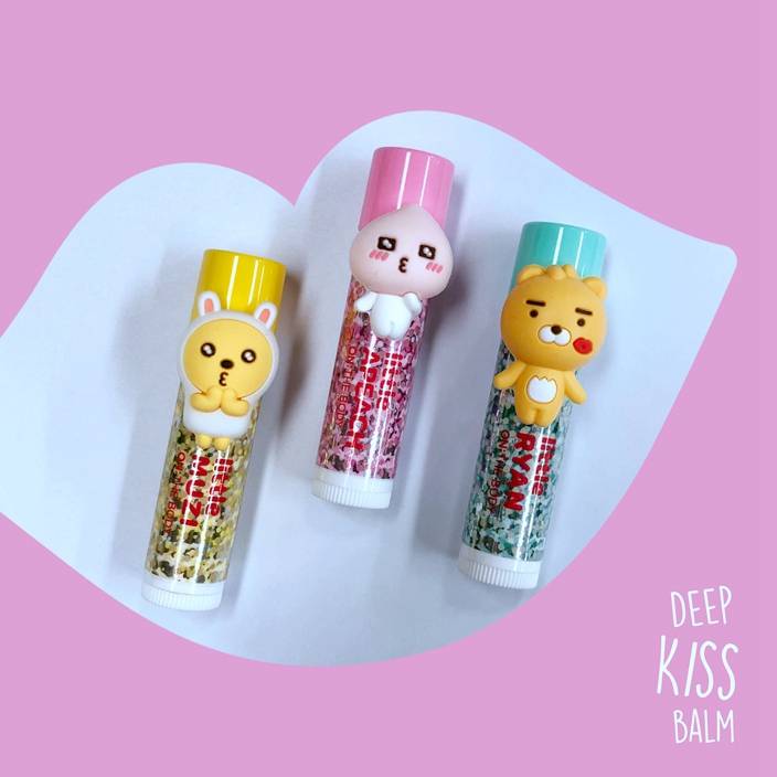 今次KISS ME潤唇膏包裝上的立體Little Friends站在閃亮珠片上,little RYAN臉上出現唇印,卻維持一貫高冷的表情,呆若木雞!而 little MUZI及little APEACH就嘟起嘴唇賣萌撒嬌!仿似上映了一套青春韓劇,給人清澀的心動感覺,到底是誰偷吻了little RYAN呢?little Friends們造型突顯了各自的性格,用來裝飾或收藏都超吸晴!這款KISS ME潤唇膏共有三款設計、顏色及味道:分別有蜜桃味的little APEACH(淡粉紅色)、櫻桃味的little MUZI(淡紅色)和蘋果味的little RYAN(無色),多塗一層更可打造更鮮艷的顏色,可愛的包裝加上滋潤有色的配方,會使你忍不住拿起多塗幾次,跟別人炫耀一番!